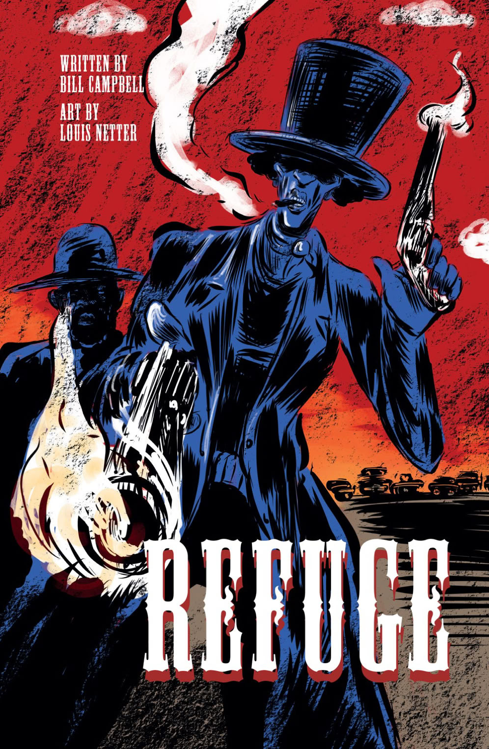 “Refuge is a revelation! Bill Campbell and Louis Netter’s beautifully uncanny and frenetic historical fiction story is a stellar entry into the weird western canon. Some of the most fitting words for this powerful and gripping graphic novel are 'ingenious,' 'epic,' 'bold,' and 'necessary.' Campbell’s deft characterizations spring to life with the wild and abstract renderings of Netter’s confident pen. Sparenot one moment and get on the trail to find REFUGE.”
